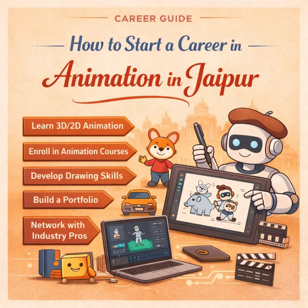 Animation is a rapidly growing industry that offers exciting opportunities for creative individuals. For students in Jaipur, starting a career in animation has become easier due to the availability of professional courses, modern tools, and expanding digital industries. By developing creative skills, mastering animation software, and building a strong portfolio, aspiring animators can establish themselves in this competitive field. With the right training and consistent practice, a career in animation can be both rewarding and fulfilling.